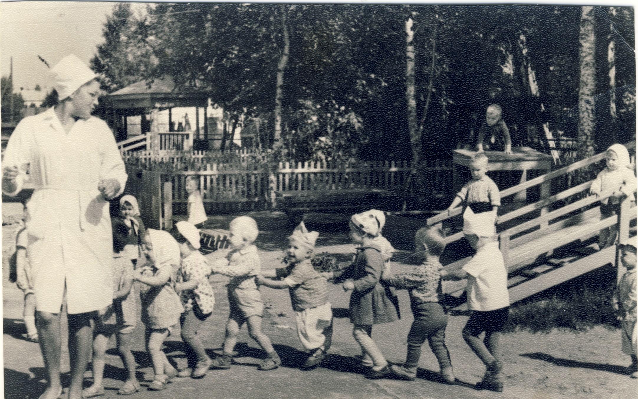 Карочи, мальчик в пилотке и шароварах в центре "паровозика" - Угр.